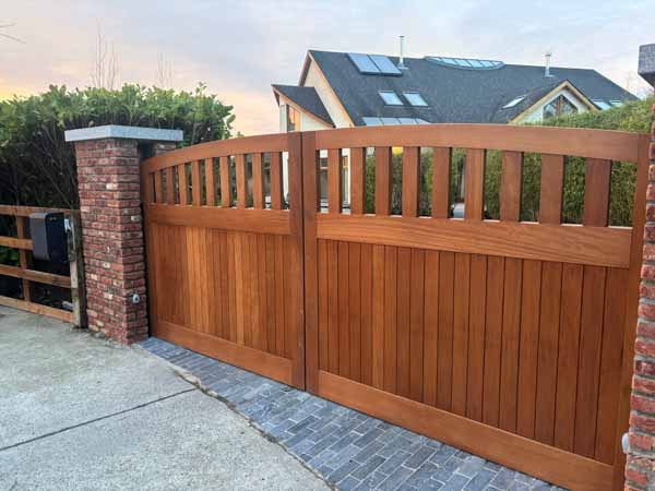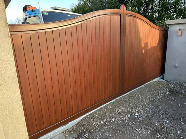 Classic and elegant, these motorised gates swing open for a timeless look, a traditional choice (though sliding gates are gaining in popularity due to their robust mechanism).
