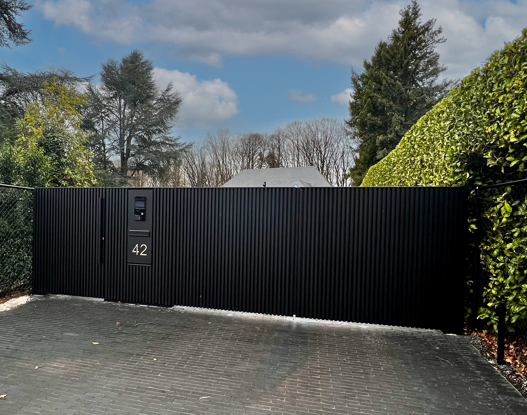Simpler and fairer, the Abel portal gives pride of place to aesthetics. This Kostum novelty with a minimalist design focuses on perfect alignment of the elements. Its 30 x 30 mm aluminum battens adorn the frame and every detail of the gate for a pure and fascinating result. The gate and totem posts are perfectly integrated into the cladding to create a perfectly harmonious unit for the entrance to your home.