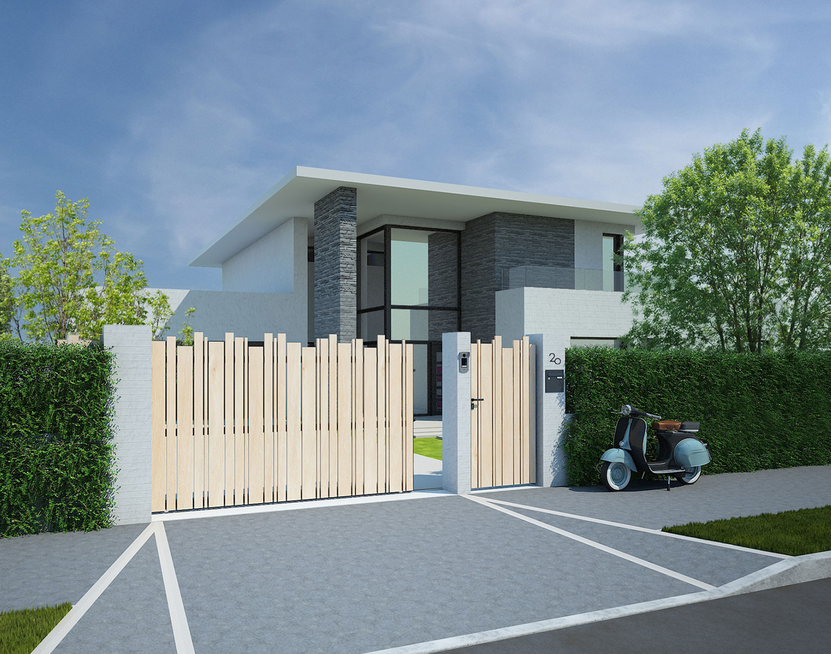 Explore the Alya portal, a perfect combination of simplicity and modernity. With its 90 mm and 160 mm openwork slats, as well as 30 mm tubes, this gate offers a unique aesthetic with varied dimensions. Add to this slats of different heights and widths for optimal customization. Available in warm wood tones, the Alya brings natural elegance to your outdoor space. Easy to integrate and suitable for various styles, this contemporary gate stands out for its subtlety.