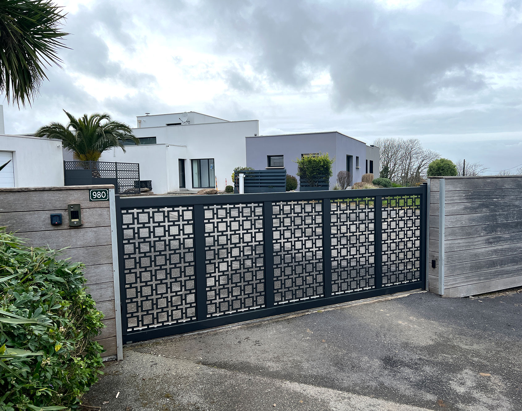 In order to preserve your privacy, Kostum offers you a portal that lets in light and sunshine without allowing prying eyes to enter your haven of peace. Thanks to its square perforated decor, the Andreva gate will allow you to maintain an opening to the outside while ensuring maximum security and protection. You will be able to enjoy your exteriors with complete peace of mind! Decors presented: Muz, Madras and Framm.