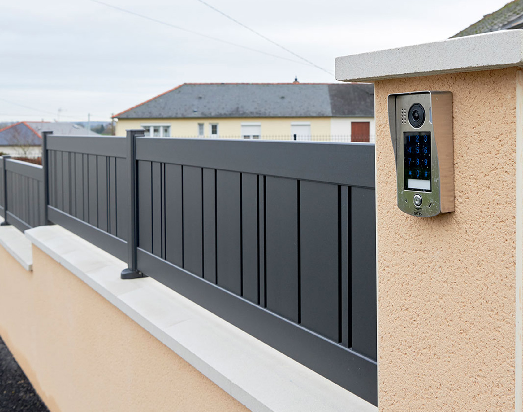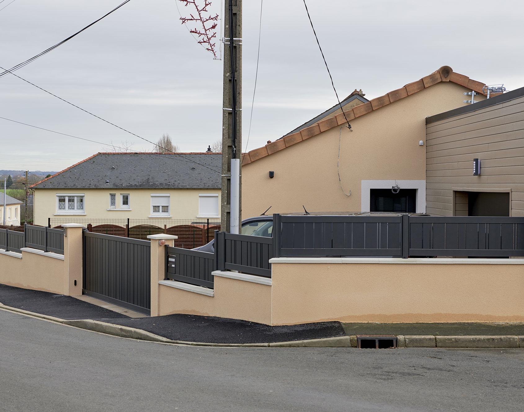 Celina is an openwork aluminum fence playing with different fillings: 160 mm wide slats, 90 mm thin slats and 25 mm extra-thin slats. Kostum was inspired by new trends and openwork cladding on contemporary homes, so that you can structure your space with complete lightness.