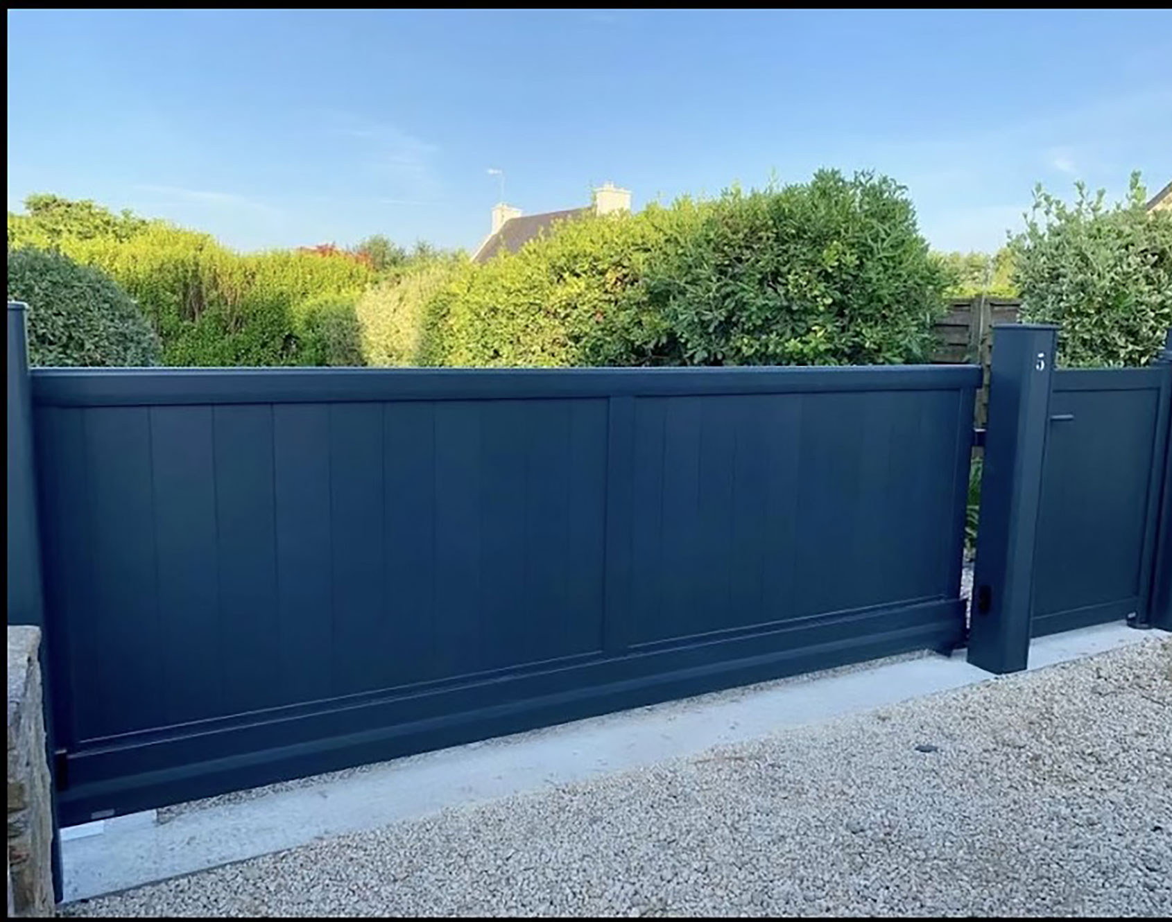 The Deiz solid aluminum gate is a stylish and solid gate! With its contemporary appearance and its extra-wide 300 mm aluminum slats, it seduces with its refined style. It secures your outdoor living spaces. Modern lines, lacquered aluminum finishes in the color of the gate, it is a safe and durable choice.