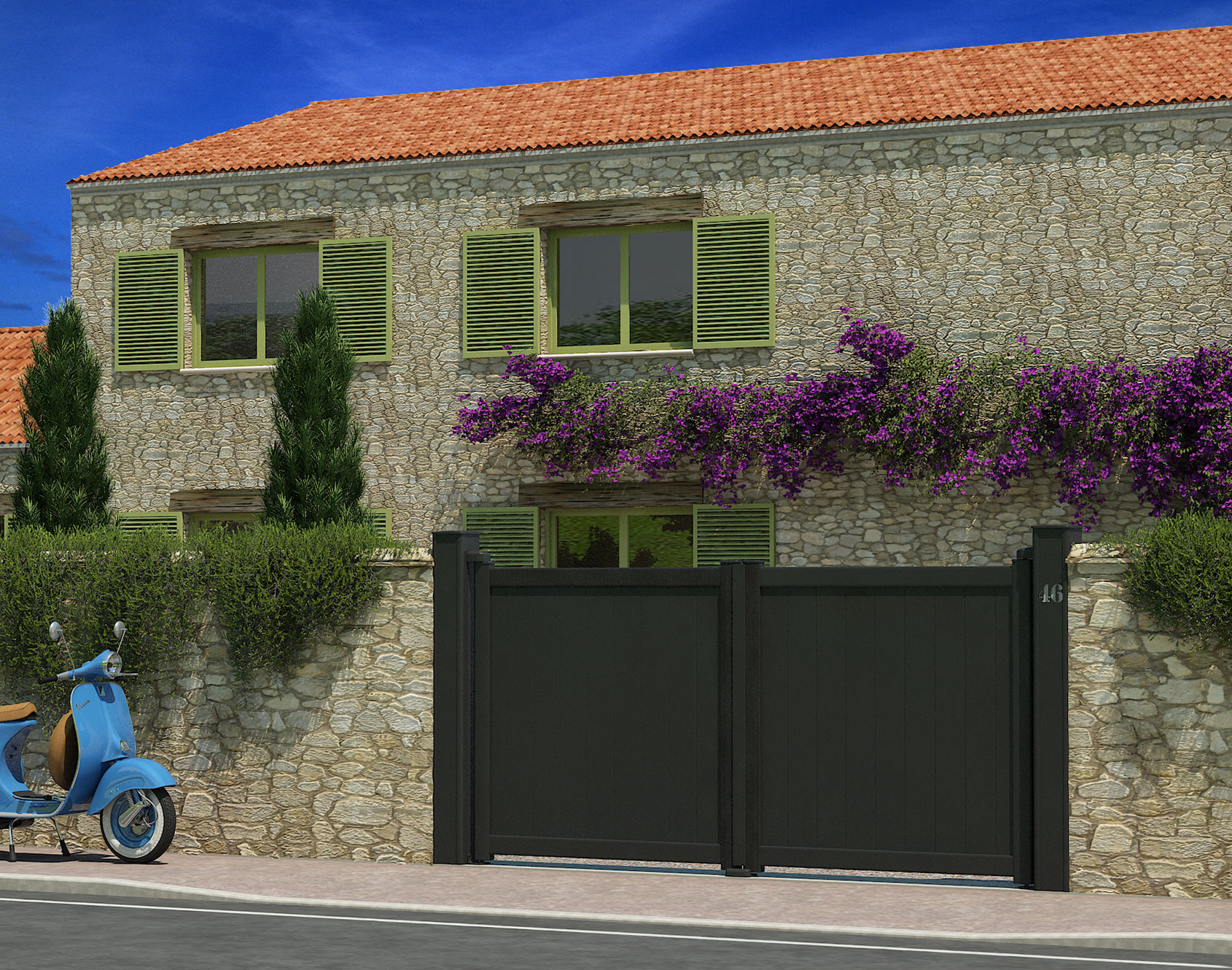 A timeless piece that never loses its charm! With the Eben portal, there is no chance of making a mistake. This gate adapts to all exterior styles and will meet the most demanding expectations. Its 150 mm slats will ensure security and privacy so that you can fully enjoy your haven of peace.