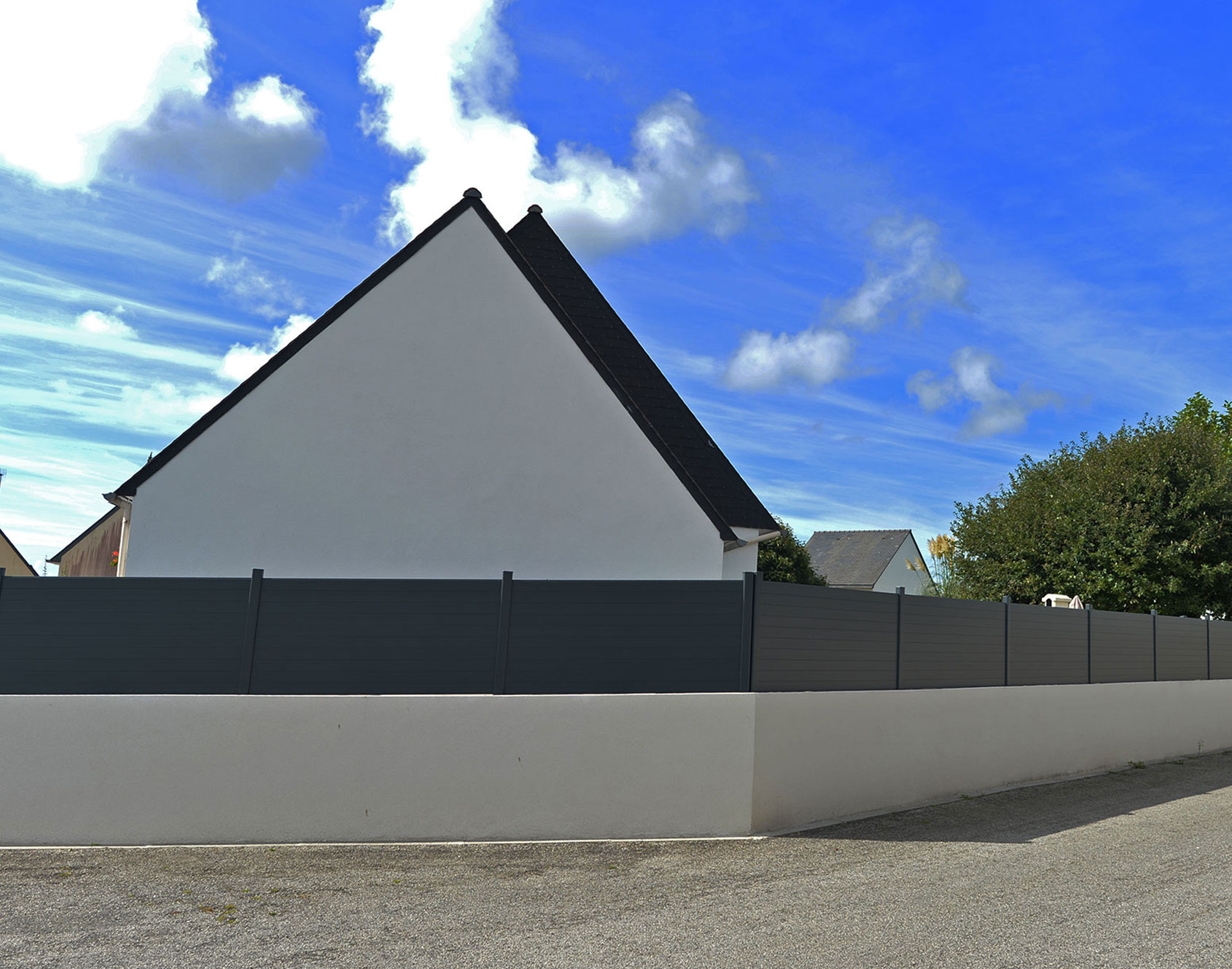 Simplicity does not rhyme with lack of security. The Karmen-Stella fence assures you of this. KOSTUM offers you a contemporary aluminum product that meets your needs with a clean and simple design that satisfies the need for a secure cocoon. Combined with a Stella gate, the Karmen-Stella fence offers you harmonized exteriors.