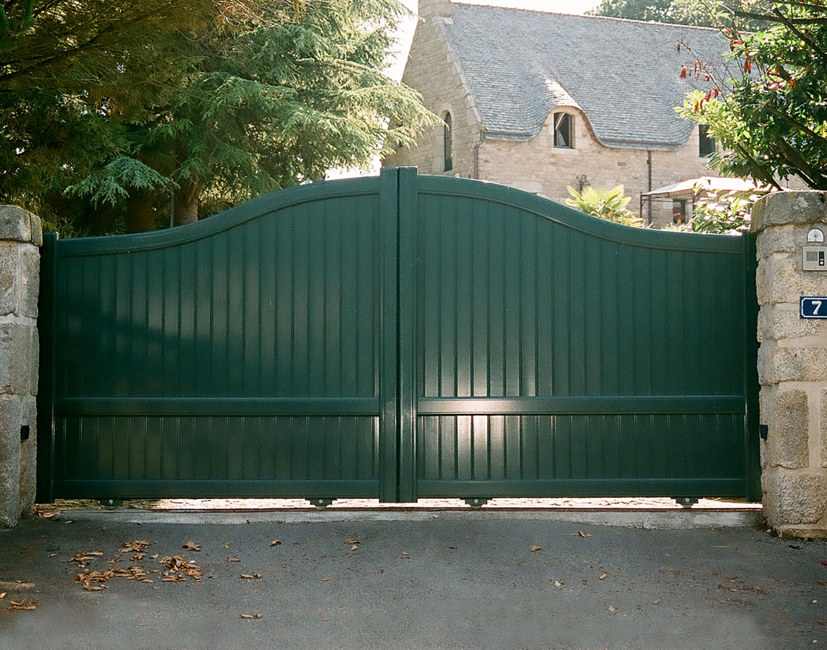 This solid gate is ideal for preserving your privacy with charm and elegance. Its high crosspiece contrasts with the linearity of the vertical slats and will soften your entrance thanks to its curved shape. A classic and sober but also modern style that adapts perfectly to all exterior styles