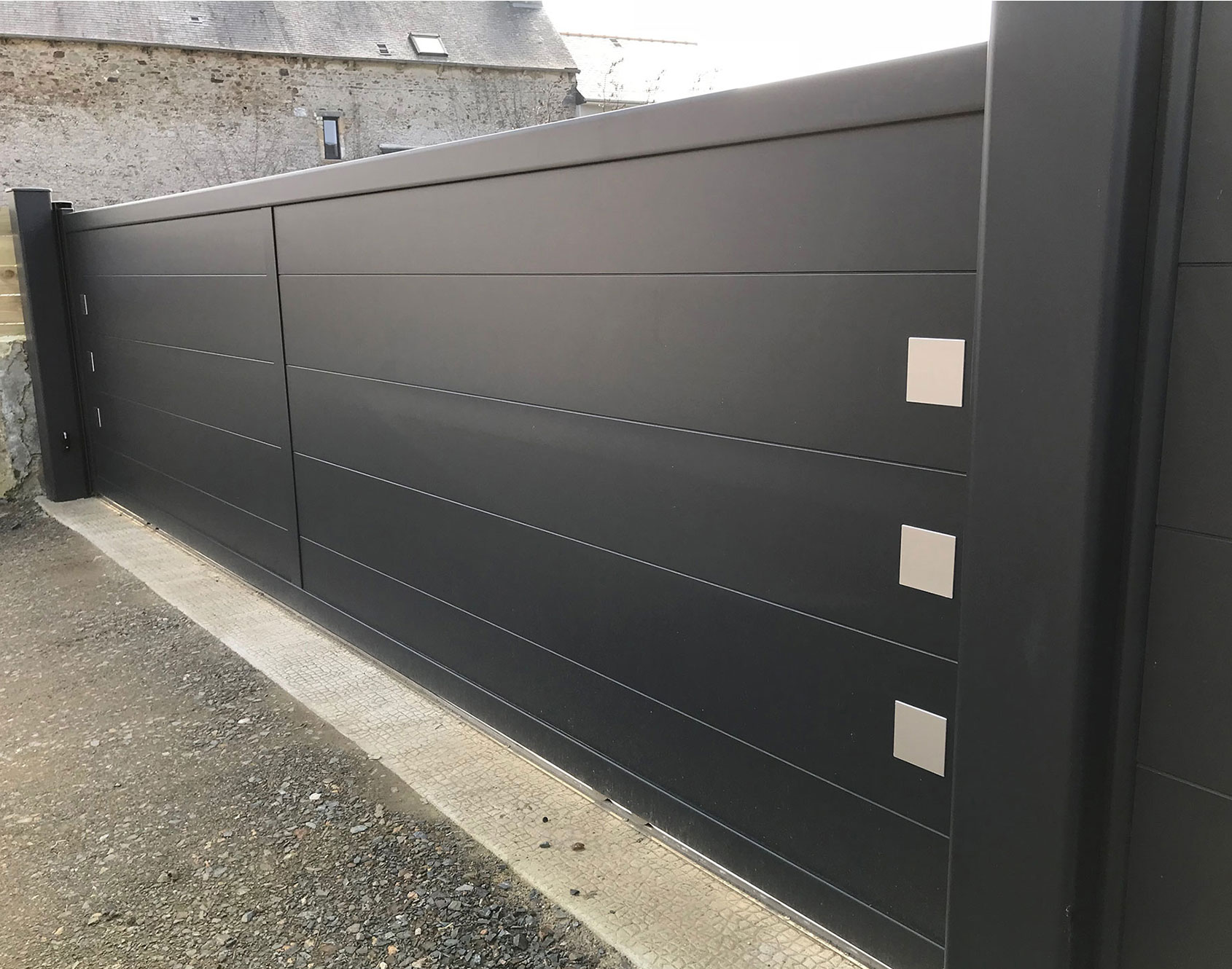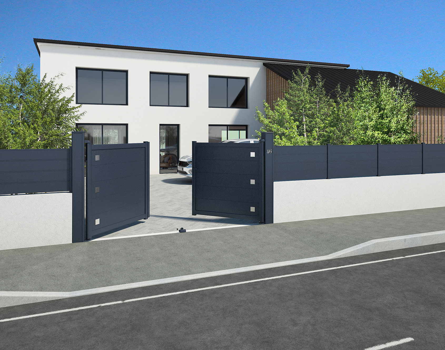 Give a unique decorative style to your entrance! Choosing the kub 300 portal means choosing precision, attention to detail and refinement. Its square alunox decorations in brushed and anodized aluminum are the final touch which gently accessorizes this gate with its delicate and clean lines. An impeccable aesthetic that will leave no one indifferent to an attractive and sophisticated entrance.