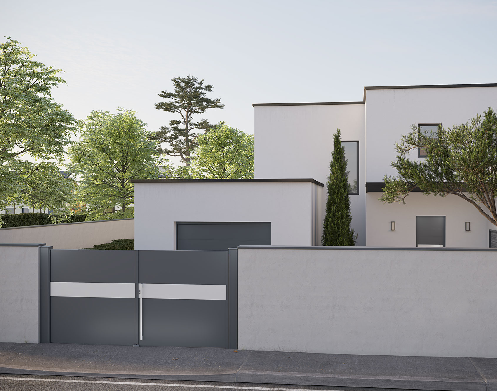 The Oxygene model is an architect-inspired portal. With the Oxygene model, Kostum continues its collaboration with the French manufacturer and entrance door specialist Bel'M. Enough to add even more harmony to your garden and your property. The Oxygene gate incorporates solid lacquered aluminum sheets as well as a stainless steel-look horizontal sheet