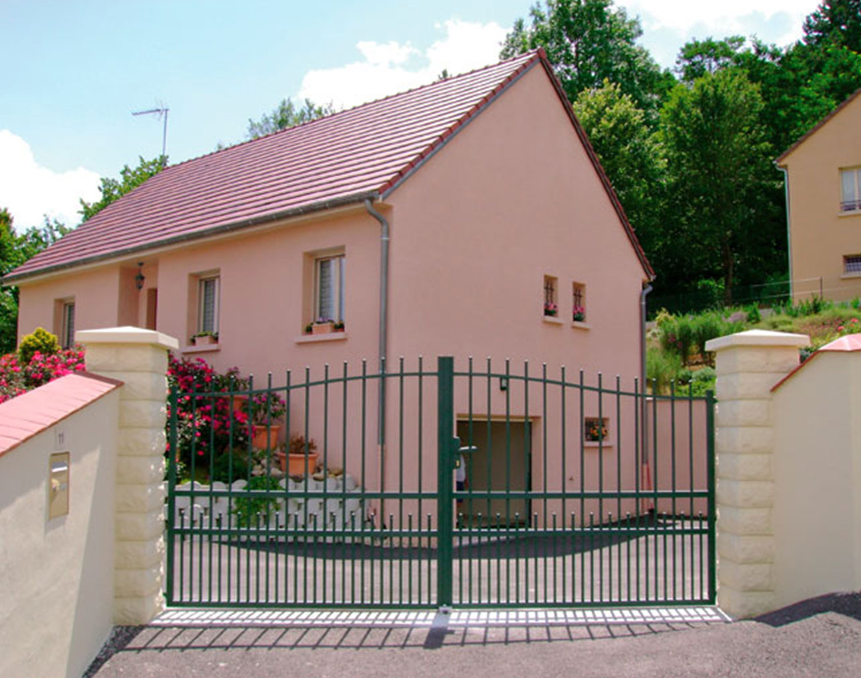 A pretty welded aluminum gate for people who have a taste for authenticity. Its traditional style with its unrivaled charm will offer you an entrance full of grace and lightness. Its high gendarme hat crosspiece softens the vertical bars and brings flexibility to its design. Flawless for this gate which promises you security and durability.