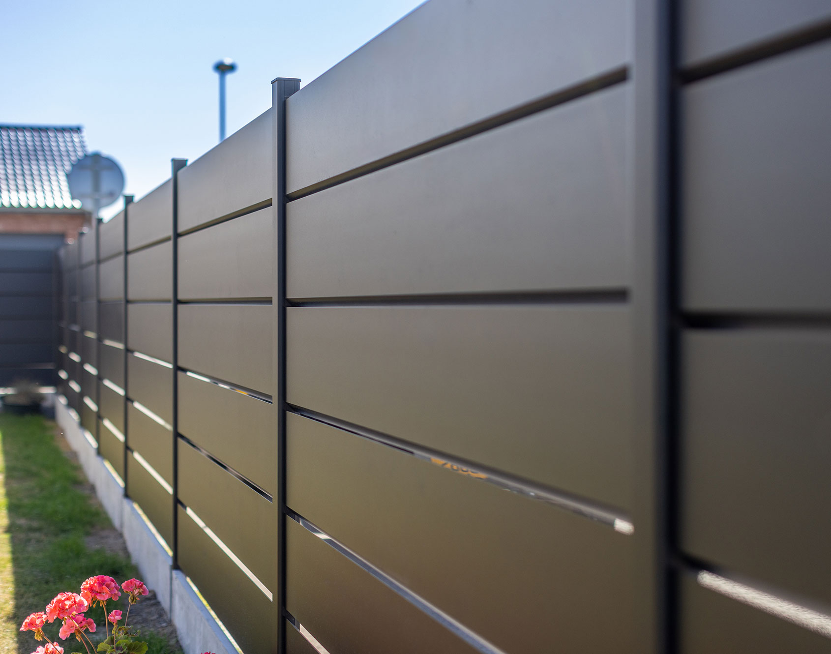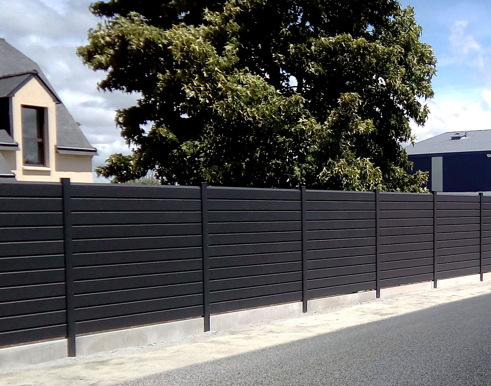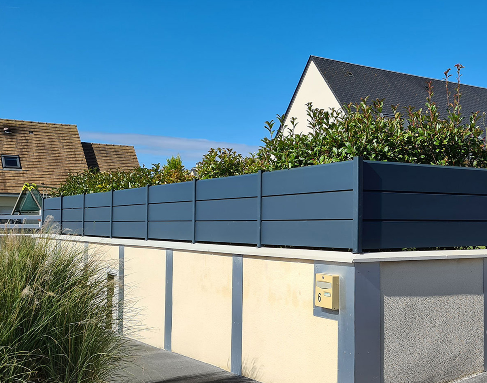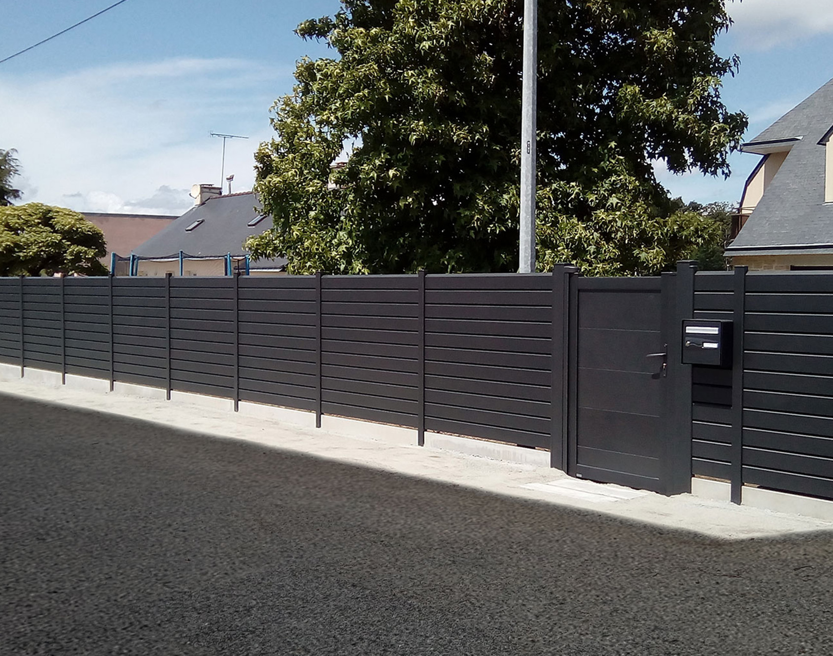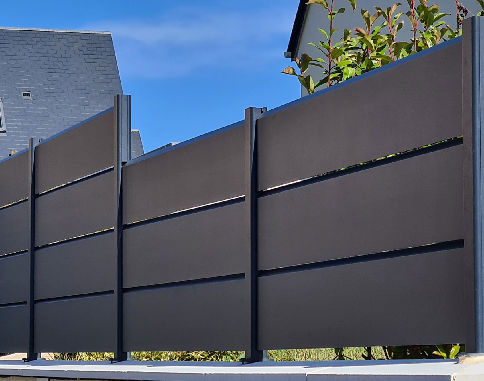The Tev aluminum fence is perfectly suited for windy regions. Indeed, this is explained by its 255x25 mm aluminum louvered slats which preserve your privacy while allowing the wind to pass through. The contemporary style of this fence will harmonize perfectly with your garden! Practical and beautiful at the same time, you can harmonize it with its matching gate.