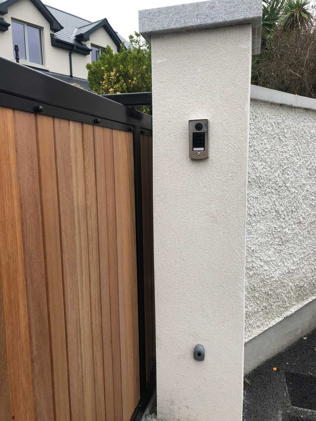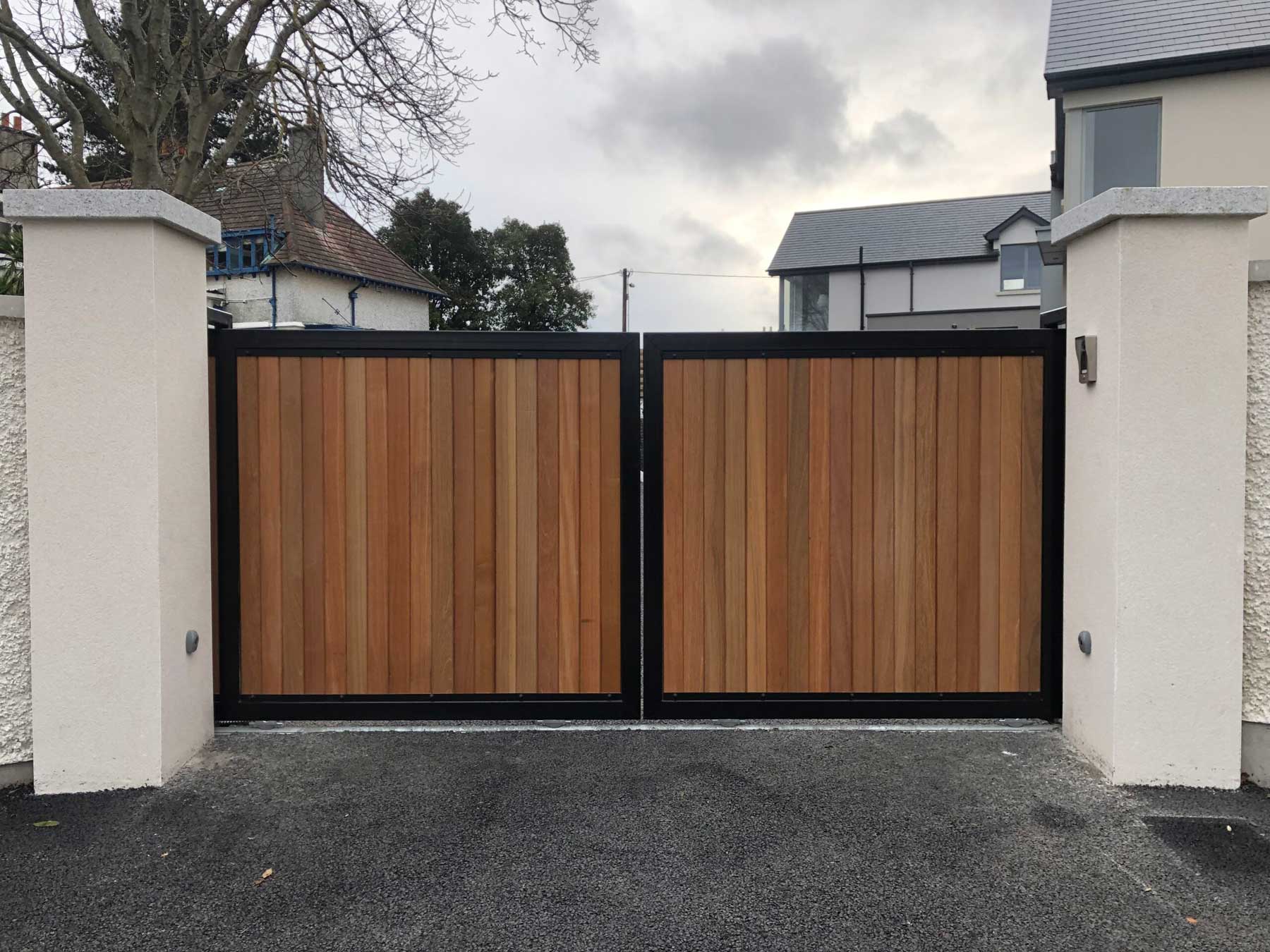 Bi parting automatic gate system with steel frame with hardwood infill